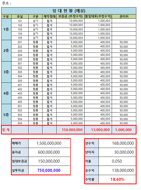 오늘은 다가구 주택을 매수 하기 전 주택의 수익률을 미리 계산해