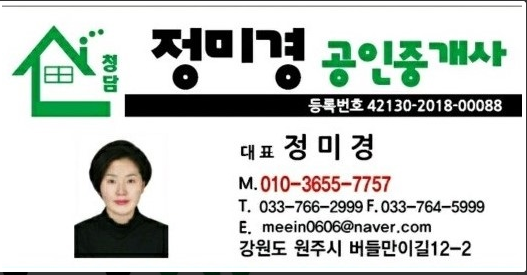 안녕하세요 원주 청담정미경 공인의 대표 정미경 중개사 입니다.^^